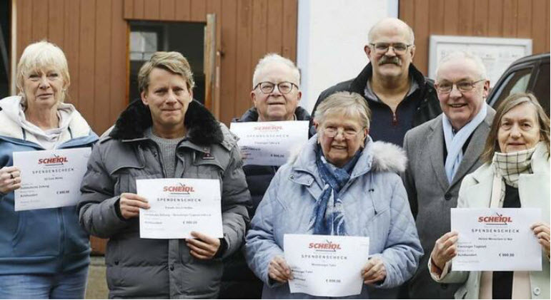 Der Bauunternehmer Josef Scheidl aus Moosburg spendete an fünf verschiedene gemeinnützige Vereine und Organisationen, u.a. an die Freisinger Tafel. Die Schecks waren jeweils in Höhe von 800 Euro ausgestellt.